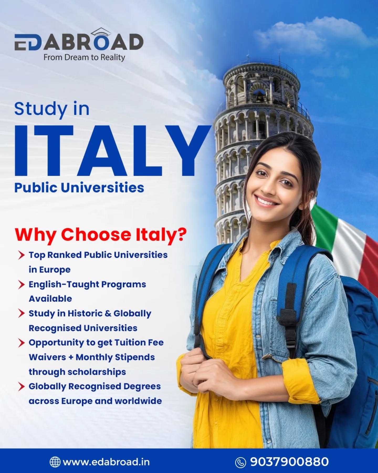 Edabroad is one of the leading study abroad consultants in Kochi, Kerala, helping students achieve their dream of studying overseas. The consultancy provides expert guidance on choosing the right course, university, and country, along with support for admissions, visa processing, scholarships, and education loans. With partnerships with many globally recognized universities, Edabroad assists students in pursuing higher education in popular destinations such as the USA, UK, Canada, Australia, and several European countries.