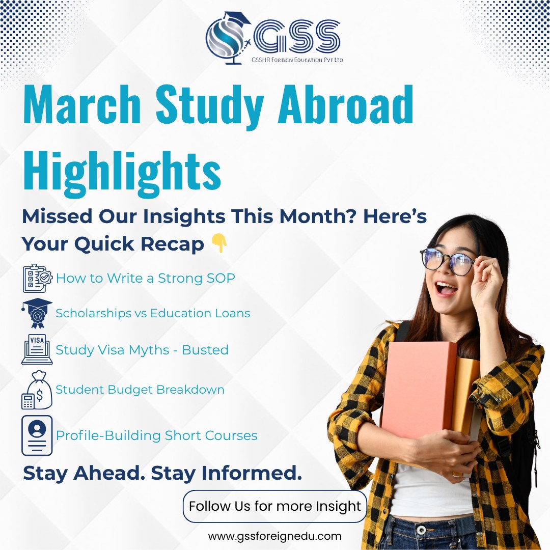 GSS Foreign Education is a study abroad consultancy that helps students achieve their international education goals through expert guidance and end-to-end support. It offers services such as university selection, application assistance, test preparation, scholarship guidance, visa processing, and accommodation support, ensuring a smooth journey from planning to placement in global universities.