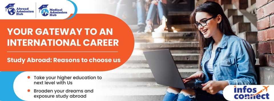 Infos Connect Consultants Pvt Ltd is an overseas education consultancy that helps students study abroad by providing guidance on university admissions, visa applications, scholarships, and language training. The organization assists students in applying to international universities for medical and non-medical courses and supports them throughout the study-abroad process. It was founded in 2015 and operates with offices in several Indian cities.