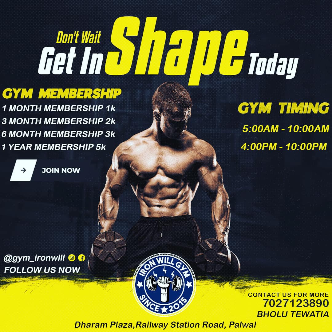 Iron Will Gym, Palwal is a well-established fitness center located on Railway Road, known for its modern equipment and spacious workout area. It offers facilities like strength training, cardio workouts, CrossFit, and aerobics sessions for overall fitness. The gym provides personal training and customized workout plans to help members achieve their goals effectively. It is highly rated for its clean environment, supportive trainers, and friendly atmosphere. With strong local reviews and consistent service quality, it is considered one of the top gyms in Palwal.