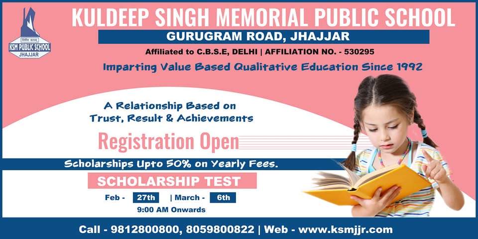 Kuldeep Singh Memorial Public School, Jhajjar is a well-established CBSE-affiliated co-educational senior secondary institution founded in 1991 and located on Gurugram Road. The school focuses on providing value-based quality education with an emphasis on honesty, truthfulness, and character building. It offers classes from nursery to Class XII with streams in science, commerce, and humanities under the CBSE curriculum.