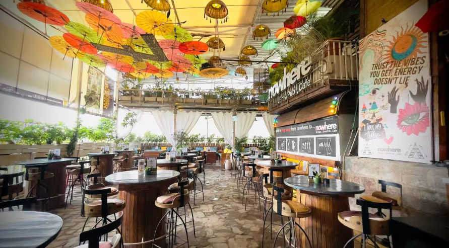 Nowhere Terrace BrewPub Cafe is a popular rooftop brewpub in Gurgaon known for its relaxed vibe, live music, and versatile café-to-nightlife concept. Located in Cross Point Mall near Galleria Market, it offers both indoor and open-air terrace seating, making it ideal for day hangouts and evening parties. The menu features a mix of North Indian, Continental, Italian, and Asian dishes along with a wide selection of beers, cocktails, and bar bites. It’s especially loved for its live band performances, casual ambiance, and social atmosphere that attracts a young crowd. The place also doubles as a co-working café during the day, adding a unique twist to its concept. Overall, it’s a great spot in Gurgaon for chill hangouts, drinks, music, and a lively rooftop experience.