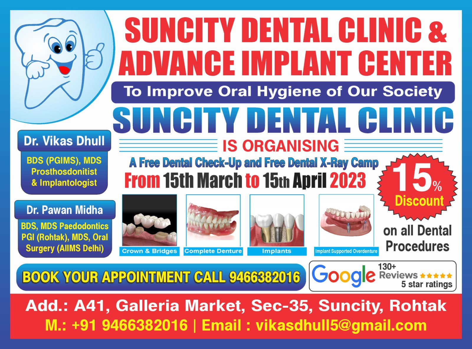 SUNCITY DENTAL CLINIC in Rohtak, Haryana is a local dental care centre offering comprehensive oral health services in a friendly environment. The clinic provides treatments including dental check‑ups, tooth extractions, root canal therapy (RCT), teeth cleaning & polishing, cosmetic dental services, and basic restorative procedures tailored to individual patient needs. Experienced dental professionals focus on comfortable and personalized care while maintaining proper hygiene and sterilization standards. It’s considered a reliable choice for everyday dental needs and routine procedures in the Rohtak area.