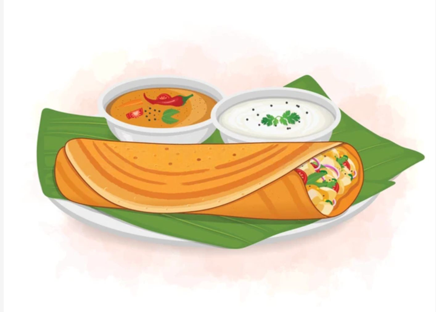 Dosa is a thin, crispy South Indian crepe served with flavorful sambar and coconut chutney, making a delicious, satisfying meal